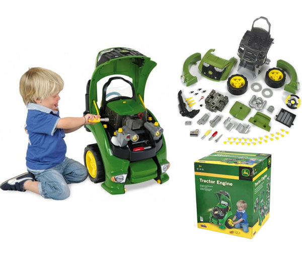 Zestaw konstrukcyjny Silnik traktora do skręcania na licencji John Deere od renomowanego producenta zabawek Klein. Zestaw składa się z 57 elementów, takich jak maska traktora, elementy silnika, narzędzia do konstruowania oraz wiele śrubek i wkrętów.Silnik został wyposażony w efekty świetlne i dźwiękowe: - dwa reflektory, które świecą jasnym światłem po naciśnięciu czerwonych przycisków znajdującego się tuż pod nimi,- posiada żółto-czarną kierownicę z naprawdę działającym klaksonem,- posiada stacyjkę z żółtym kluczykiem, po którego przekręceniu rozlega się dźwięk pracującego silnika.- zestaw składa się z 54 elementów oraz 3 narzędzi do konstruowania- traktor wyposażony w efekty świetlne (reflektory) i dźwiękowe (klakson, stacyjka z dźwiękiem pracy silnika)- każdy z reflektorów, stacyjka i kierownica wymagają użycia 2 x baterii AAA/R03 (brak w zestawie), zabawka w sumie wymaga 8 baterii AAA/R03- średnica koła: 21 cm- średnica kierownicy: 14,5 cmMarka Klein znana jest na świecie z produktów wykonanych z dbałością o szczegóły, z najlepszej jakości materiałów oraz atrakcyjnego wzornictwa. Zabawki tej marki idealnie trafiają w gusta małych i większych użytkowników. Artykuły oznaczone marką Klein gwarantują świetną zabawę oraz odznaczają się długą żywotnością.- wymiary opakowania: 52 x 43,5 x 40 cmwiek: od 3 lat