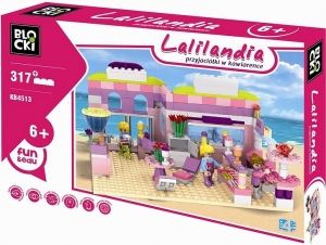 Klocki BLOCKI wykonane zostały z wytrzymałego plastiku, nie odbiegają one jakością od innych markowych klocków.Zachwycają dużą ilością ruchomych elementów oraz dużymi możliwościami samodzielnego tworzenia wymarzonych pojazdów i budowli. Klocki Blocki Lalilandia to seria klocków stworzona specjalnie dla dziewczynek.Lalilandia Przyjaciółki w Kawiarence składa się z 317 elementów.Zestaw ten umożliwi nam zbudowanie niezwykle przytulnej kawiarenki z bufetem, stolikami i niezbędnymi akcesoriami.Znajdziemy tu także 3 ludziki.ZAWARTOŚĆ:klocki - 317 elementówWIEK:6 +WYMIARY:opakowania: 37,5 x 25,5 x 6 cmUWAGI:Ostrzeżenia! Zabawka nieodpowiednia dla dzieci poniżej 3 lat. Małe części. Niebezpieczeństwo zadławienia.