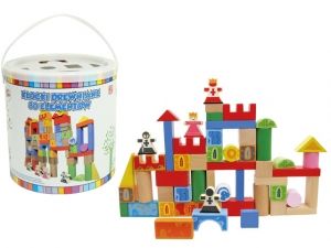 Zabawka 2 in1 klocki drewniane i sorterKlocki mają idealne kształty i gładkie krawędzie. Są kolorowe z różnymi nadrukamiDo ich malowania i lakierowania używane są tylko atestowane farby i lakiery.Są bezpieczne dla Twojego dziecka. Dzięki odpowiednim atestom jako nieliczne są już polecane dla dzieci od 10 miesiąca życia.Dzięki sorterowi dziecko uczy się dopasowywać odpowiednie kształty w odpowiednie miejsce. Dziecko bawiąc się klockami ćwiczy wyobraźnię przestrzenną, logiczne myślenie, sprawnościmanualne, poznaje podstawowe figury oraz zapamiętuje kolory.ZAWARTOŚĆ: - 80 klocków w różnych kształtach oraz kolorach , takich jak: trójkąty, prostopadłościany, w kształcie drzewka, mostu itp. oraz figurki króla, królowej i 2 rycerzy- plastikowe wiaderko z sorterem (pokrywką wyposażoną w otwory w kształcie klocków).WIEK: