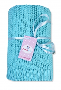 Kocyk dzianinowy - bawełniany.Prześliczny bawełniany kocyk w pastelowym kolorze dla maluszków.Idealnie sprawdzi się w okresie wiosenno-letnim, jest przewiewny, delikatny i mięciutki.Kocyk nie gryzie i nie podrażnia delikatnej skóry dziecka.Niezastąpiony jako okrycie na spacerze i podczas domowej drzemki, sprawdzi się również jako przytulanka.To piękne dopełnienie wystroju wózka i łóżeczka.Produkt ładnie zapakowany, idealnie nadaje się na prezent.Kocyki dostępne w trzech pastelowych kolorach: ecru, jasny róż i turkus.Wymiary kocyka 75x100 cm. ZAWARTOŚĆ:Kocyk dziecięcy w pastelowym kolorzeSkład: 100% bawełna WIEK: 0 + WYMIARY: 75 x 100 cm WAGA: ok 200g