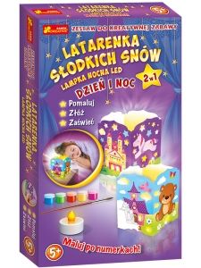 Dzięki temu kreatywnemu zestawowi, Twoje dziecko samodzielnie wykona lampkę, a następnie pomaluje ją jak prawdziwy artysta.W łatwy i szybki sposób będzie mogło wykonać coś wyjątkowego.W zestawie znajdują się szablony pozwalające wykonać dwie wersje lampki.Pomaluj, złóż i zaświeć!ZAWARTOŚĆ:- 2 kartonowe szablony- Lampka LED- 1 bateria, typ: CR2032 3V- Farbki akrylowe- Pędzelek- Kryształki- InstrukcjaWIEK:- Powyżej 5 latWYMIARY OPAKOWANIA:- 18 x 31,5 x 4 cmWAGA OPAKOWANIA:- Ok. 180 gUWAGI:Produkt nie nadaje się dla dzieci poniżej 3 lat.