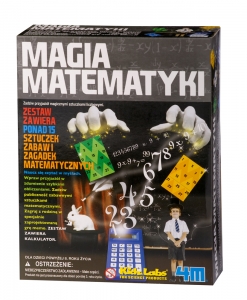 MAGIA MATEMATYKI.Zestaw zawiera ponad 15 sztuczek zabaw i zagadek matematycznych.Naucz się czytać w myślach.Wpraw przyjaciół w zdumienie szybkimi obliczeniami.Zadzie publiczność zabawnymi sztuczkami matematycznymi.Zagraj z rodziną w specjalnie zaprojektowaną grę memo. ZAWARTOŚĆ:- 1 kalkulator,- 2 kostki,- 1 zestaw magicznych kart do czytania w myślach,- magiczny kwadrat z nadrukowanymi liczbami,- 1 magiczny superkwadrat,- 1 zestaw matematycznych kart z liczbami, - 40 kart memo,- szablony układanek z kablami,- magiczne obracane szablony,- papier w linie, - szczegółowa instrukcja. WIEK:8 lat +WYMIARY:17 x 22 x 6 cmWAGA:200 gUWAGI:Nieodpowiednie dla dzieci poniżej 3 lat ze względu na małe części.Zalecany nadzór osoby dorosłej.