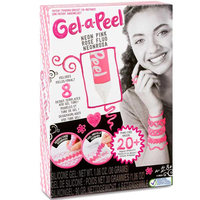 1 tuba z żelem koloru neonowego różu możliwość stworzenia ponad 20 bransoletek 8 szablonów do tworzenia przezroczysta podkładka, na którą wyciskamy żel końcówka do wyciskania wskazówka dla projektantki szpatułka do czyszczenia pojemność 1 tuby - 30 gWiek:od 8 latWymiar:pojemność 1 tuby 30g