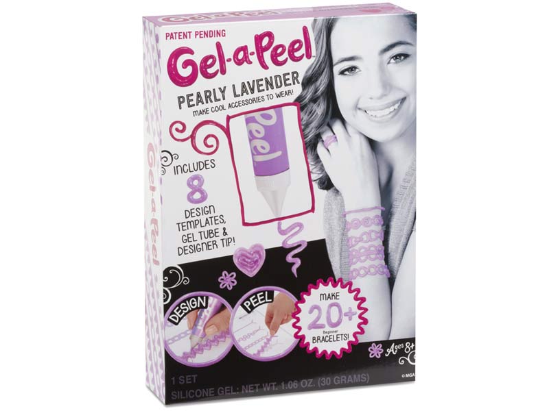 1 tuba z żelem koloru perłowej lawendy możliwość stworzenia ponad 20 bransoletek 8 szablonów do tworzenia przezroczysta podkładka, na którą wyciskamy żel końcówka do wyciskania wskazówka dla projektantki szpatułka do czyszczenia pojemność 1 tuby - 30 g