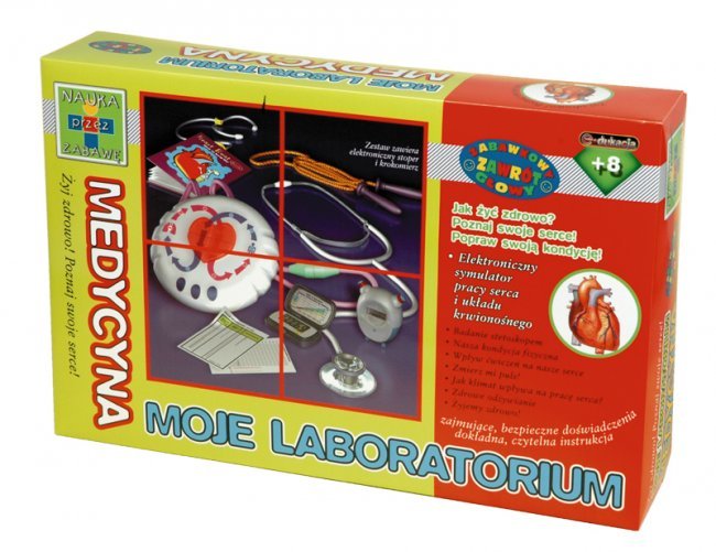 Moje laboratorium MEDYCYNA zawiera opis i niezbędny sprzęt do wykonania bardzo ciekawych i całkowicie bezpiecznych doświadczeń. Zestaw przeznaczony jest dla dzieci i młodzieży ciekawych świata, których fascynuje eksperymentowanie i samodzielne odkrywanie.