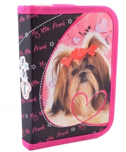 Piórnik dwuklapkowy My Little Friend.Stworzony został z myślą o dzieciach na początku swej przygody ze szkołą.Piórnik jest pojemny - zmieści niezbędne akcesoria szkolne.Na klapkach piórnika umieszczone są przezroczyste kieszonki na plan lekcji oraz tabliczkę mnożenia, które znajdują się w piórniku. Utrzymany został w różowo-czarnych barwach, wnętrze ma różowe, a na przodzie piórnika znajduje się nadruk uroczego pieska Shih Tzu.Wykonany został z wysokiej jakości materiałów z dużą starannością.Piórnik zachwyca nie tylko swą funkcjonalnością, ale także wyglądem. ZAWARTOŚĆ:Piórnik posiada:- dwie klapki z przezroczystymi kieszonkami,- plan lekcji,- tabliczkę mnożenia,- gumki na niezbędne akcesoria, - zapięcie na suwak, - gumowe uchwyty do suwaków w kształcie śladów łapek,- modny wzór,- wysokiej jakości materiały.WIEK:6 +WYMIARY:piórnika zamkniętego: 21 x 14 x 4 cmpiórnika rozłożonego: 21 x 51,5 x 2 cmpiórnika z zamkniętymi klapkami: 21 x 31 x 2 cm UWAGI:Nieodpowiednie dla dzieci poniżej 3 roku życia.