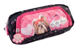 Saszetka dwukomorowa My Little Friend.Piórnik saszetka jest niezwykle poręczny, zajmuje niewiele miejsca w plecaku, a przy tym pomieści niezbędne akcesoria szkolne.Posiada dwie komory zapinane na suwaki.Saszetka utrzymana jest w różowo-czarnych barwach, a na przodzie posiada nadruk uroczego pieska Shih Tzu.Piórnik z pewnością spodoba się każdemu dziecku!ZAWARTOŚĆ:Saszetka posiada:- 2 komory zapinane na suwaki,- gumowe uchwyty do suwaków w kształcie łapek,- niewielkie rozmiary,- modny wzór,- wysokiej jakości materiały.WIEK:6 +WYMIARY:saszetki: 20 x 10 x 5,5 cmUWAGI:Nieodpowiednie dla dzieci poniżej 3 roku życia.