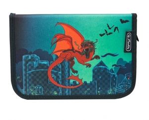 Piórnik Dragon to doskonałe uzupełnienie tornistra Smartod firmy Herlitz.Jest bardzo starannie wykonany, przy wykorzystaniu najlepszych materiałów.Posiada komorę zapinaną na suwak.Bogato wyposażony i dobrze rozplanowany.Wszytko po to, by utrzymać porządek i pomieścić niezbędne akcesoria szkolne.Motywem graficznym piórnika jest Smok.ZAWARTOŚĆ:- Piórnik- Plan lekcji- 14 mazaków- 8 kredek- Długopis- 2 ołówki HB- Temperówka- Gumka- Linijka- EkierkaWAGA:- 315 g (z wyposażeniem)WYMIARY:- Ok. 21 x 14 x 4 cmUWAGI:Nieodpowiednie dla dzieci w wieku poniżej 3 lat.