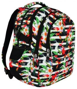 PLECAK MŁODZIEŻOWY TROPICAL STRIPES od ST.MAJEWSKI.St.Right to nowa marka od Firmy St.Majewski.Plecak ma bogate, uporządkowane wnętrze - system SOW (System Organizacji Wnętrza).Jest pojemny, estetycznie wykonany, ładny i posiada modny wzór model 2018 - z pewnością przypadnie do gustu jego użytkownikowi.Plecak posiada 2 główne komory zapinane na suwak, dwie mniejsze kieszonki zapinane na suwak.W największej komorze jest kieszonka na sprzęt grający lub telefon komórkowy oraz wyjście na słuchawki a także miejsce na laptopa.W kieszeniach mamy miejsce na ładowarkę do laptopa oraz organizer, który ułatwi utrzymanie porządku wewnątrz plecaka.Z boku plecaka są 2 siateczkowe kieszonki.Plecy są profilowane i usztywniane.Szelki są regulowane, grube i miękkie.Na szelkach zamocowano pas mostkowy.Metalowe suwaki zakończone zostały profilowanymi uchwytami.Pojemność plecaka możemy regulować za pomocą pasów ściągających umieszczonych po bokach plecaka.!!! DO KAŻDEGO PLECAKA Z MODELU 2018 CHUSTA WIELOFUNKCYJNA GRATIS !!!ZAWARTOŚĆ:- 2 główne komory zapinane na suwak z wyjściem na słuchawki, miejscem na laptopa, komórkę bądź inny sprzęt grający,- 2 mniejsze kieszenie zapinane na suwak z organizerem i kieszenią na ładowarkę,- 2 siateczkowe kieszonki na bidon,- solidny i wygodny uchwyt,- profilowane uchwyty do suwaków- profilowane ergonomiczne plecy,- regulowane, miękkie szelki,- pas mostkowy,- regulowana objętość za pomocą plastikowych zatrzasków, po boku plecaka,- wzmocnione dno,- wytrzymały i wodoodporny materiał,- metalowe suwaki, profilowane uchwyty,- modny wzór model 2018,- gratis chusta wielofunkcyjna.WYMIARY:plecaka pustego ok.36 x 45 x 6 cm23 litry WAGA:880 gWIEK:10 lat+UWAGI:Nieodpowiednie dla dzieci poniżej 3 lat.