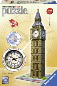 W połączeniu ze starannie dobranymi wzorami daje to mieszankę, która powoduje, że są one doskonałą rozrywką zarówno dla dzieci, jak i dorosłych.Puzzle z serii Budynki 3D składają się z 3 rodzajów puzzli:- zwykłych, płaskich puzzli- puzzli zawiasowych - składanych dzięki technologii easyclick- puzzli zakrzywionychWykonanie ich z dbałością o każdy szczegół pozwala odtwarzać budynki bez użycia choćby kropli kleju. Model Big Ben przedstawia najsłynniejszy zegar świata, znajdujący się w Londynie na wieży należącej do kompleksu Pałacu Westminsterskiego.Z 216 puzzli złożymy budynek, który będzie miał 41 cm wysokości.W zestawie, oprócz puzzli, znajdują się też akcesoria, takie jak podstawka, czy znajdująca się na dachu budynku iglica, które sprawią, że budowla stanie się jeszcze bardziej autentyczna. Puzzle zawierają moduł zegara, dzięki któremu zestaw będzie praktyczną ozdobą pokoju.Zabawka posiada Certyfikat Jakości i Bezpieczeństwa CE.