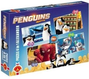 Pingwiny z Madagaskaru - Puzzle 4w1Nie jedna, nie dwie, ale aż cztery układanki to prawdziwa gratka dla miłośników puzzli! Po ułożeniu otrzymamy cztery obrazki różnej wielkości z różnymi przygodami uwielbianych przez dzieci Pingwinów z Madagaskaru. Puzzle 4w1 to świetne rozwiązanie dla rodzeństwa - każde dziecko może układać własny obrazek.Zestaw ten spełni oczekiwania dziecka i rodzica.Jest to układanka, która "rośnie" razem z dzieckiem - wraz z rozwojem umiejętności układania, można zwiększać ilość elementów w układankach, a zarazem zmniejsza się rozmiar pojedynczych puzzli. ZAWARTOŚĆ:1 układanka 70 elementów1 układanka 54 elementy1 układanka 48 elementów1 układanka 35 elementówWYMIARY: opakowania: 30,5 x 24 x 5 cmukładanki: 33 x 22 cm WAGA: 570 gUWAGI:Ostrzeżenia: Nieodpowiednie dla dzieci w wieku poniżej 3 lat. Istnieje ryzyko zadławienia się małymi elementami. Prosimy zachować opakowanie ze względu na podane informacje.