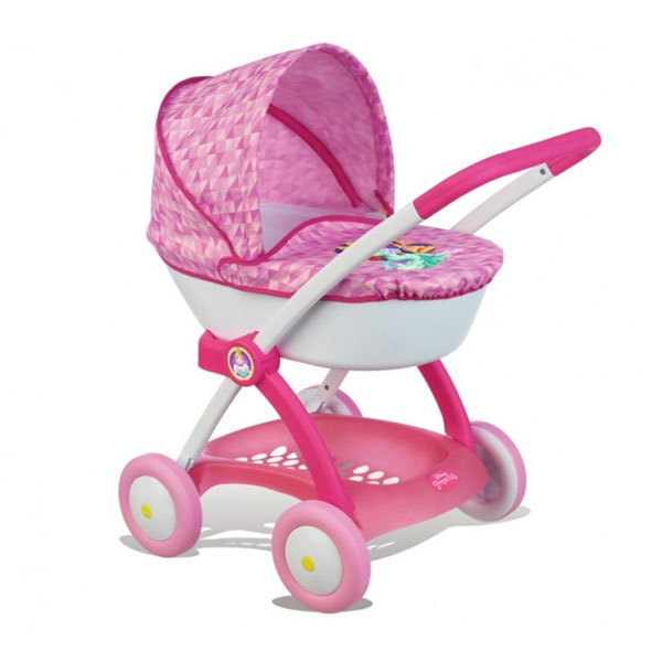 Wózek dla lalek Disney Princess głęboki gondola SMOBYWózek dla lalek wykonano różowej połyskującej kolorystyce . Stabilny pojazd, dzięki dużym kołom zapewni pełen komfort i bezpieczeństwo zabawy. Posiada budkę oraz pokrowiec z wizerunkiem uwielbianymi przez maluchy Księżniczkami. Posiada koszyczek na wszystkie akcesoria potrzebne małej mamie. Przeznaczony dla lalek do 42 cm.