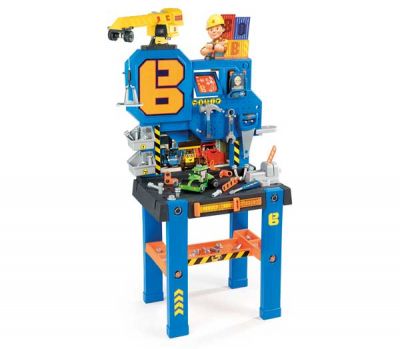Bob Budowniczy Warsztat BRICOLO CENTER + DŹWIG W zestawie 92 akcesoria, w tym samochód do składania za pomocą narzedzi, zintegrowany dżwig z ruchomym podnośnikiem, smartfon, liczne narzedzia: młotek, obcęgi, śrubokręt, piła, klucze, nakrętki, gwoździe, itp. Wymiary: 82x37x117 cmWiek: od 3 latOpakowanie:76 x 59 x 16 cm