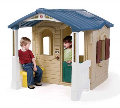 Domek z werandą wyposażony jest stylowe drzwiczki uchylane okiennice, kuchenkę, zlew wraz kranem, kilka akcesoriów do gotowania, dzwonek elektryczny, telefon oraz skrzynkę na listy. Świetlik w dachu rozjaśnia wnętrze domku. Weranda ma ustwioną małą ławeczkę do siadania.Wszystkie akcesoria wykonane są z wysokiej jakości materiałów, które zapewnia Twojemu dziecku fajną i bezpieczną zabawę.Do pełnej funkcjonalności ten domek STEP2 wymaga zasilania: 2 baterie LR03 / AAA do dzwonka i 2 baterie LR03 / AAA do telefonu.Ostrzeżenie. Wyłącznie do użytku domowego.