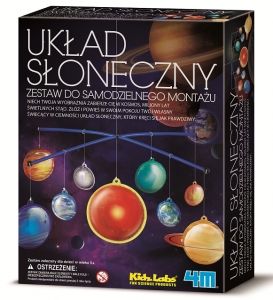 UKŁAD SŁONECZNYZESTAW DO SAMODZIELNEGO MONTAŻU.Niech Twoja wyobraźnia zabierze Cię w kosmos, miliony lat świetlnych stąd.Złóż i powieś w swoim pokoju Twój własny świecący w ciemności układ słoneczny, który kręci się jak prawdziwy. ZAWARTOŚĆ:- 1 plansza z pełnym wykazem układu słonecznego,- 1 zestaw (18 elementów) przezroczystych plastikowych osłonek na planety,- 1 zestaw do zawieszenia planet z łącznikami,- rurki z nitkami,- szczegółowa instrukcja. WIEK:8 lat +WYMIARY:17 x 22 x 6 cmWAGA:140 gUWAGI:Nieodpowiednie dla dzieci poniżej 3 lat ze względu na małe części.Zalecany nadzór osoby dorosłej.