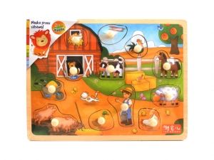 Układanka drewniana z pinezkami to idealna zabawka dla małych dzieci!Jest to świetny sposób na naukę poprzez zabawę i rozwój Twojego dziecka!Drewniane zabawki stanowią świetną alternatywą dla zabawek plastikowych - są wykonane z naturalnych surowców, trwałe, bezpieczne dla dziecka i nieszkodliwe dla środowiska.Układanka składa się z 12 elementów i przedstawia różnego rodzaju zwierzęta mieszkające na farmie (m.in. owcę, krowę, świnkę). Aby dziecku łatwiej było układać dane elementy, posiadają one specjalne chwytaki w postaci drewnianych gałek. ZAWARTOŚĆ:układanka drewniana - 12 elementów WIEK:od 10m+ WAGA:335g WYMIARY:opakowania: 30 x 22,5 x 3 cm UWAGI:Nieodpowiednie dla dzieci w wieku poniżej 10 miesiąca życia. Zawiera małe elementy, które mogą zostać połknięte. Opakowanie nie jest zabawką. Przed podaniem zabawki dziecku usunąć wszystkie elementy opakowania. Opakowanie należy zachować.