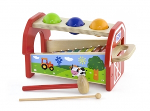 Przebijanka + cymbałki od firmy Viga to jedna z najwspanialszych zabawek, która będzie służyła długo i zapewni Twojemu dziecku wiele lat ciekawej i kreatywnej zabawy. Wbijak jest świetnym ćwiczeniem dzięki któremu maluch rozwija zdolności manualne, wyobraźnię oraz logiczne myślenie.Zabawka posiada dwie funkcje co daje podwójną radość z zabawy dla Waszych pociech. Zadaniem dziecka jest przebicie kolorowych kulek przez otwory znajdujące się na górze zabawki. Kiedy kule wpadną do środka, wybiją łagodną melodię tocząc się po ksylofonie.Całość wykonana została z drewna lakierowanego i pomalowana nie toksycznymi farbami w żywe barwy, które zadowolą każdego użytkownika i dadzą mnóstwo radości z zabawy.Naszym priorytetem jest bezpieczeństwo i jakość naszego towaru, dlatego dbamy o to aby farby, którymi malujemy nasze zabawki nie były toksyczne i spełniały normy bezpieczeństwa (EN71 i ASTM).WYMIARY:produktu:dł: 160mm x wys: 285mm x szer: 160mmopakowania:dł: 292mm x wys: 170mm x szer: 170mmWIEK:od 2 latZAWARTOŚĆ:-przebijanka + cymbałkiUWAGI:Nie nadaje się dla dzieci poniżej 24 miesięcy. Zawiera małe części, które łatwo połknąć lub mogą dostać się do dróg oddechowych. Niebezpieczeństwo uduszenia.