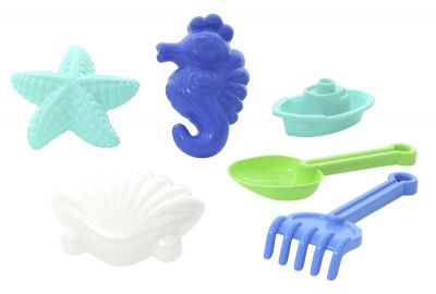 Dzięki ciekawemu wzorowi, Twoje dziecko od razu rozpozna na plaży swoje dzieło.Każda foremka ma związek z morzem. Mamy tu konika morskiego,muszelke oraz rozgwiazdę.W zestawie także jedna łódka oraz szpadelek i łopatka.Wszystkie elementy wykonane zostały z wysokiej jakości tworzyw, dzięki czemu są całkowicie bezpieczne dla Maluszka.