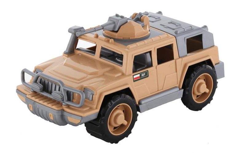 Wader Quality Toys Samochód terenowy Jeep z ruchomym i obrotowym działem, od 3 lat, wymiary: 31 x 15,5 x 15 cm.