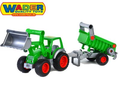 Rewelacyjny Traktor z Łyżką i Przyczepą to świetna zabawa w domu jak i na zewnątrz. Dzięki gumowym kołom zabawa staje się jeszcze bardziej atrakcyjna.Traktor z przyczepą i łyżką firmy Wader to idealny produkt to zabawa zarówno w domu jak i w piaskownicy. Do tego produkt porusza się na gumowych, miękkich kołach, dzięki czemu zabawa jest jeszcze ciekawsza! W naszej ofercie dostępna jest wersja z cysterną lub wywrotką.Wymiary: 57cm