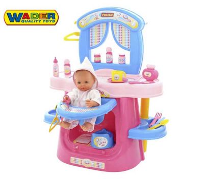 Zestaw opiekunka Niania Wader Lalka + akcesoriaZestaw do pielęgnacji z lalką i akcesoriami firmy Wader. W skład zestawu wchodzą:siedziskolalka,nocnik,ubranka,wieszak,półki,grzebień,sztućce,butelkakubek.kosmetykiDo tego w zestaw zawiera przewijak, który może być wykorzystywany jako wanienka.Zestaw wykonany jest z wysokiej jakości tworzywa, odpornego na warunki atmosferyczne.Wymiary: 75,5 x 72 x 48,5 cmWiek: od 3 lat