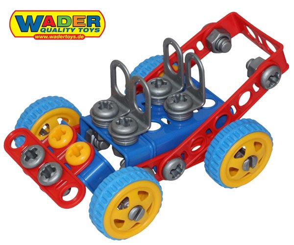 Produkt bezpieczny dla najmłodszych dzieci. Zabawkę cechują łatwe i proste w konstruowaniu elementy. Zabawka wyróżnia się świetnym wykonaniem i dużą wytrzymałością.Pobudzają kreatywność oraz doskonale rozwijają zdolności manualne najmłodszych.W zestawie znajdują się klucze,które są niezbędne małemu inżynierowi do konstruowania niezwykłych pojazdów. Do tego wiele elementów konstrukcyjnych,nakrętki,koła i opony. Za pomocą elementów można zbudować samochód i wiele innych konstrukcji zależnych od wyobraźni dziecka. Realistyczne wyposażenie na pewno zapewni długą wspaniałą zabawę.