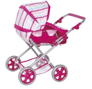 Wózek dla lalek z daszkiem, wykonany z wysokiej jakości materiałów.Profilowana rączka pozwala na wygodne prowadzenie wózka.Wysokość rączki jest regulowana, dzięki czeku dziewczynka może dłużej cieszyć się swoim wózkiem.Solidna metalowa konstrukcja gwarantuje wytrzymałość zabawki.Konstrukcję wózka można bardzo łatwo złożyć.Daszek można swobodnie stawiać i opuszczać.Wózek posiada wyjmowane nosidełko oraz zdejmowaną torbę.W nosidełku zmieści się lalka do 40cm długości.Nosidełko można swobodnie wyjmować z wózka.Może ono służyć do przewożenia lalki w wózku bądź do przenoszeni jej dzięki rączkom przymocowanym do nosidełka.Po wyjęciu nosidełka uzyskujemy wózek spacerowy w regulowanym podgłówkiem i podparciem pod nogi.W dolnej części wózek posiada pojemny koszyk na drobiazgi.Zestaw jest idealnie dobrany kolorystycznie i stanowi wspaniały prezent dla małej dziewczynki.ZAWARTOŚĆ:- głęboki wózek Natalia z możliwością zmiany w spacerowy,- nosidło,- podręczna torba.WIEK:3 lata +WYMIARY:- opakowania ok. 45 x 33,5 x 15 cm- wielkość lalki mieszczącej się w nosidełku do 40 cm- regulacja wysokości rączki od 35 cm do 56 cm- wielkość kosza ok 25 x 28 cm- średnica kół 14 cmWAGA:2700 UWAGI:Nieodpowiednie dla dzieci w wieku poniżej 3 lat