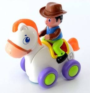 Zabawka Konik z jeźdźcem uruchamia się po naciśnięciu kapelusza.