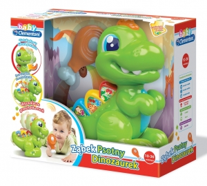 Ząbek Psotny Dinozaurek to idealna zabawka interaktywna dla najmłodszych dzieci!Ząbek to mały, sympatyczny dinozaur, który umili Twojemu dziecku czas.Ten niezwykły dinozaur mówi, śpiewa i porusza się.Posiada dwa tryby zabawy:1. z aktywacją ruchów2. bez aktywacji ruchów.Posiada 4 interaktywne przyciski:* ABC - uczy pierwszych liter alfabetu* 123 - są to 3 interaktywne przyciski do nauki pierwszych cyfr i słuchania zabawnych piosenek.W zestawie znajduje się także grzechotka, za pomocą której można aktywować ruchy dinozaura.Ząbek kołysze się w czasie chodu.A obracając głowę aktywuje zabawne, mechaniczne dźwięki i odgłosy. ZAWARTOŚĆ:- Ząbek Psotny Dinozaurek WIEK:12 - 36 miesięcy WYMIARY:opakowania: 27 x 26 x 14 cmZASILANIE:4 x baterie AA 1,5 V - załączone baterie testowe Instrukcja użytkowania baterii w RegulaminieWAGA:940 gram UWAGI:Uwaga! Należy usunąć wszystkie elementy opakowania, które nie są częścią zabawki. Trzymaj je poza zasięgiem dzieci. Zapoznaj się ze wskazówkami znajdującymi się na opakowaniu i zachowaj pudełko dla celów informacyjnych. Kolory i szczegóły mogą nieznacznie odbiegać od przedstawionych na opakowaniu.