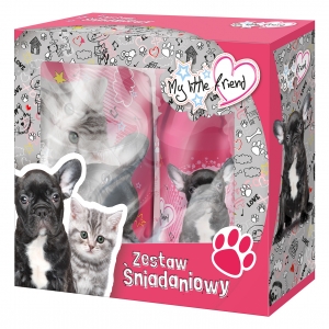 ZESTAW ŚNIADANIOWY MY LITTLE FRIEND KOT I PIESZestaw składa się z bidonu i śniadaniówki.Oba elementy wykonane są z wysokiej jakości tworzywa, przystosowanego do kontaktu z żywnością i spełniającego normy europejskie.Zestaw idealnie sprawdza się w szkole i na wycieczkach.Produkty zdobią graficzne motywy licencyjne My Little Friend.Śniadaniówka zamykana jest na zatrzask.Bidon posiada słomkę oraz specjalny guziczek, po naciśnięciu którego samoczynnie wysuwa się ustnik. ZAWARTOŚĆ:- śniadaniówka- bidonWIEK:5 +WYMIARY:opakowania:26,8 x 23,5 x 9Pojemność bidonu – 550 mlWymiary śniadaniówki od wewnętrznej strony – 14 x 9 x 4,2 cmWAGA:320 gUWAGI:Nieodpowiednie dla dzieci poniżej 3 roku życia.